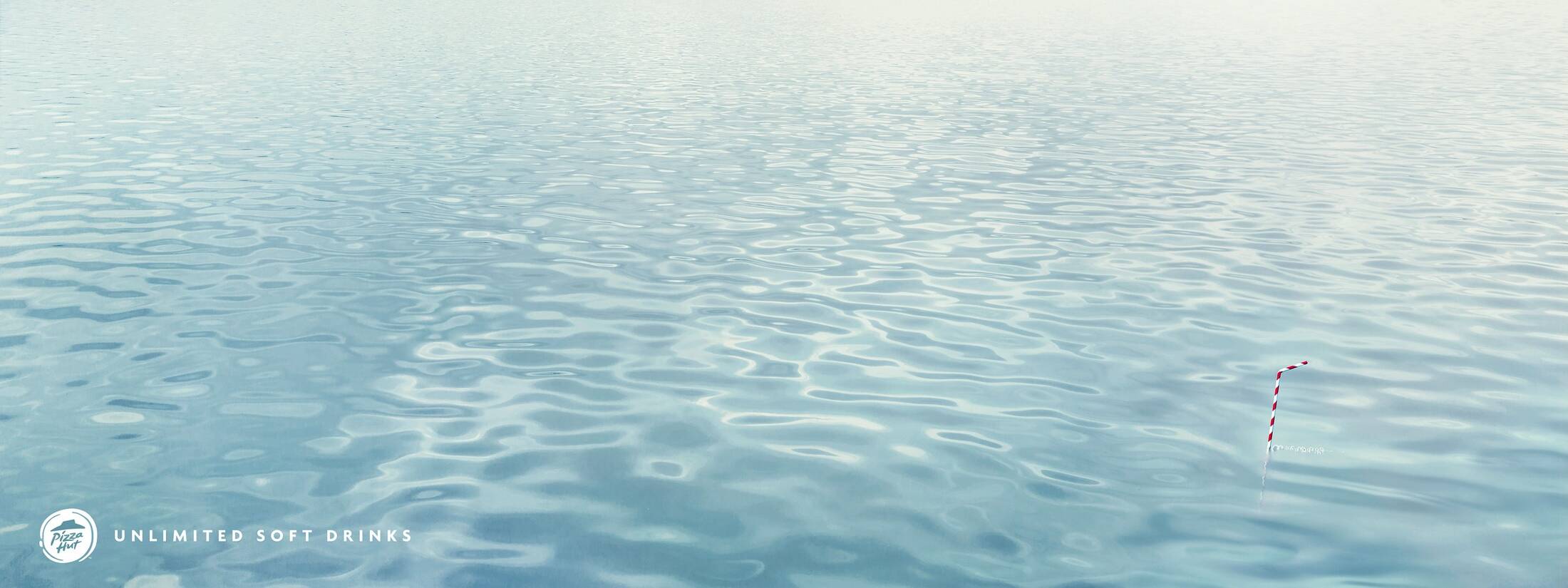 الفكرة: لأن الآيس كريم والمشروبات الغازية غير محدودة في مطاعم بيتزا هت، تم تصميم بوسترات خارجية (OOH) تعكس “اللا نهاية”.